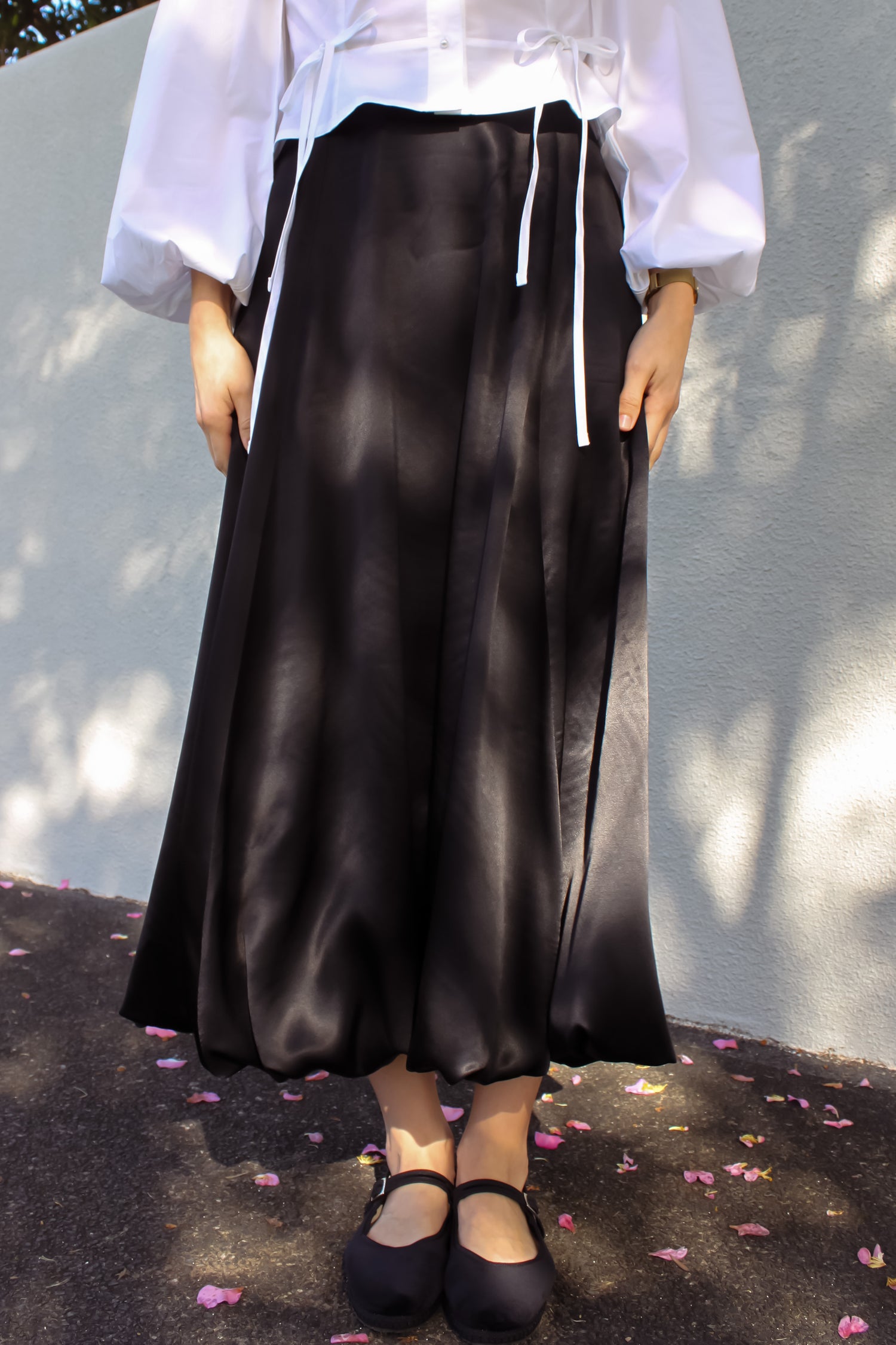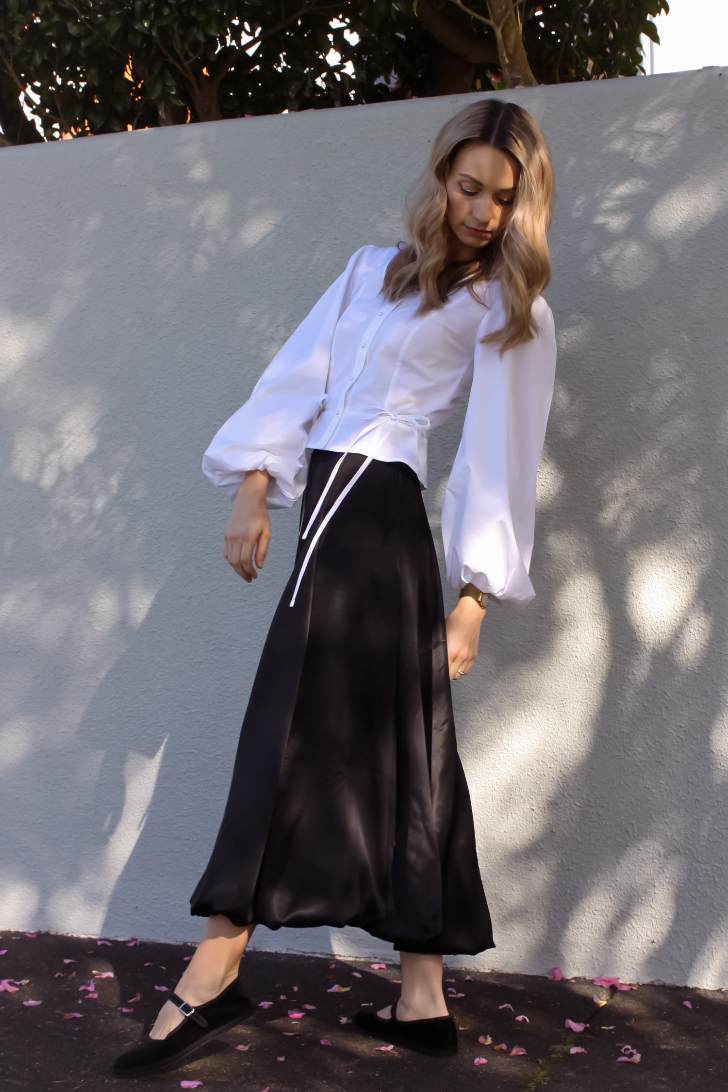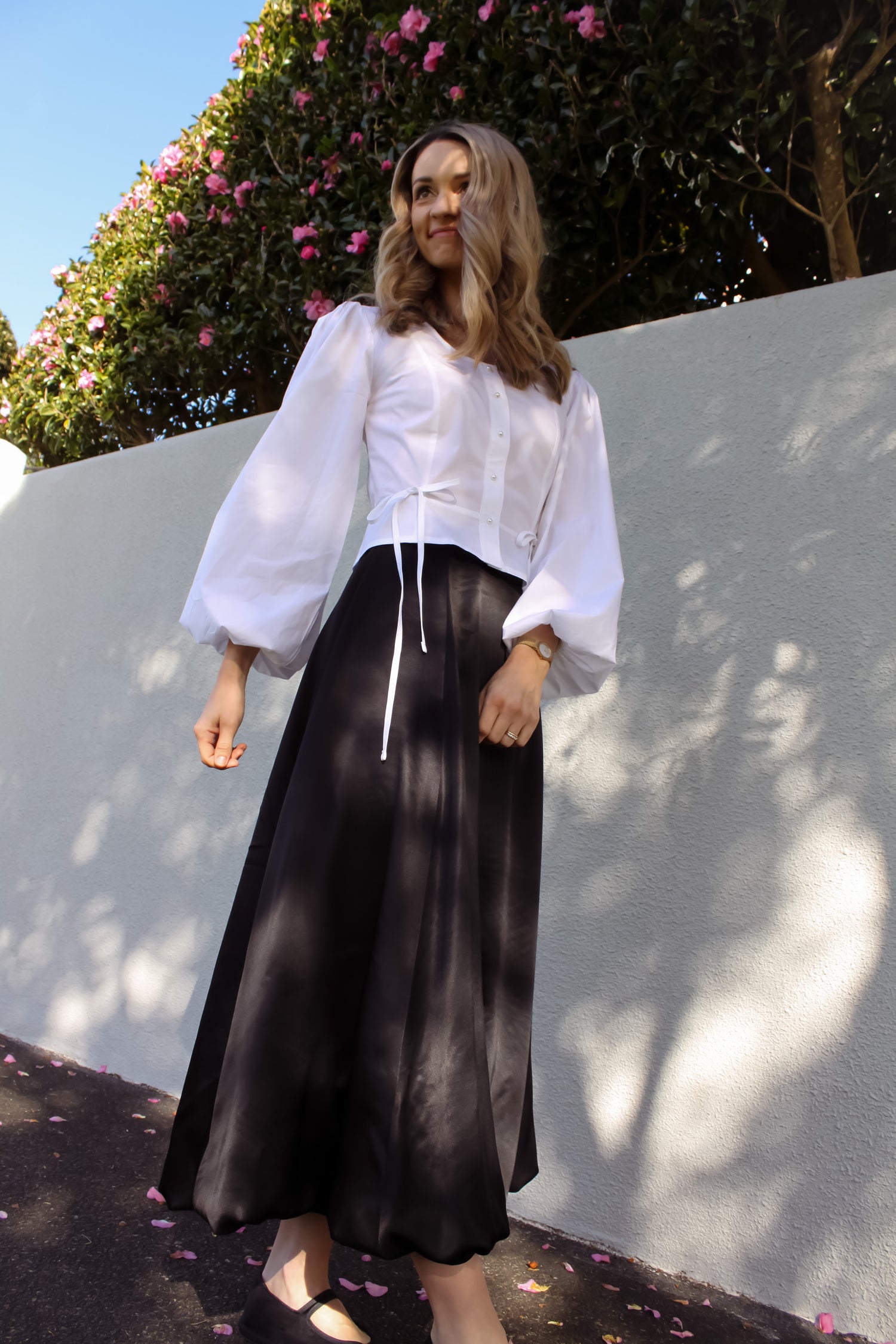 Elegant and playful with a nod to the 00's, our Pointe balloon skirt is our new all-season staple. With its buttery soft satin and bouncy balloon hem, this will be your beautiful new favourite to pair with everything.